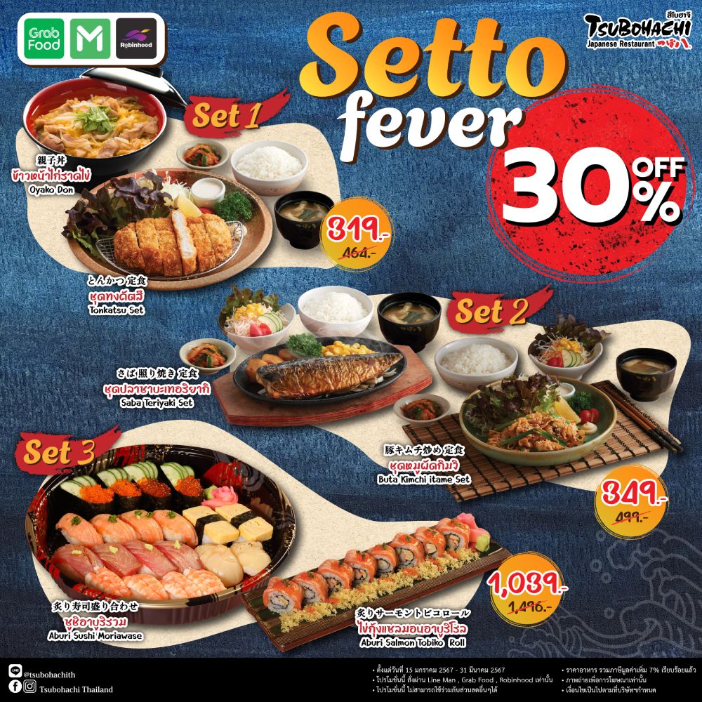 โปรโมชั่น Setto Fever ลดสูงสุด30% เลือกอร่อยกับ 3 ชุดสุดคุ้ม ส่งตรงความอร่อยถึงที่