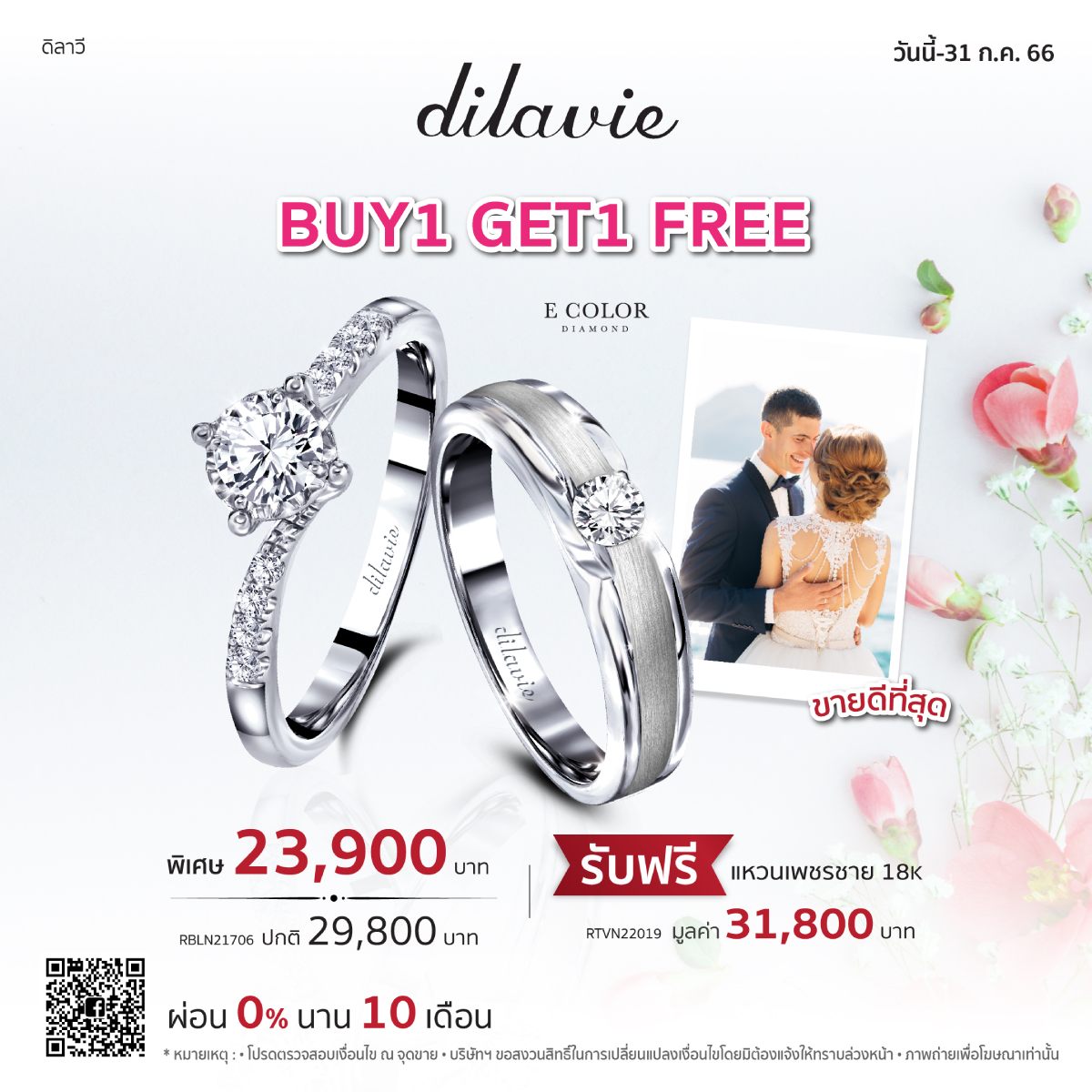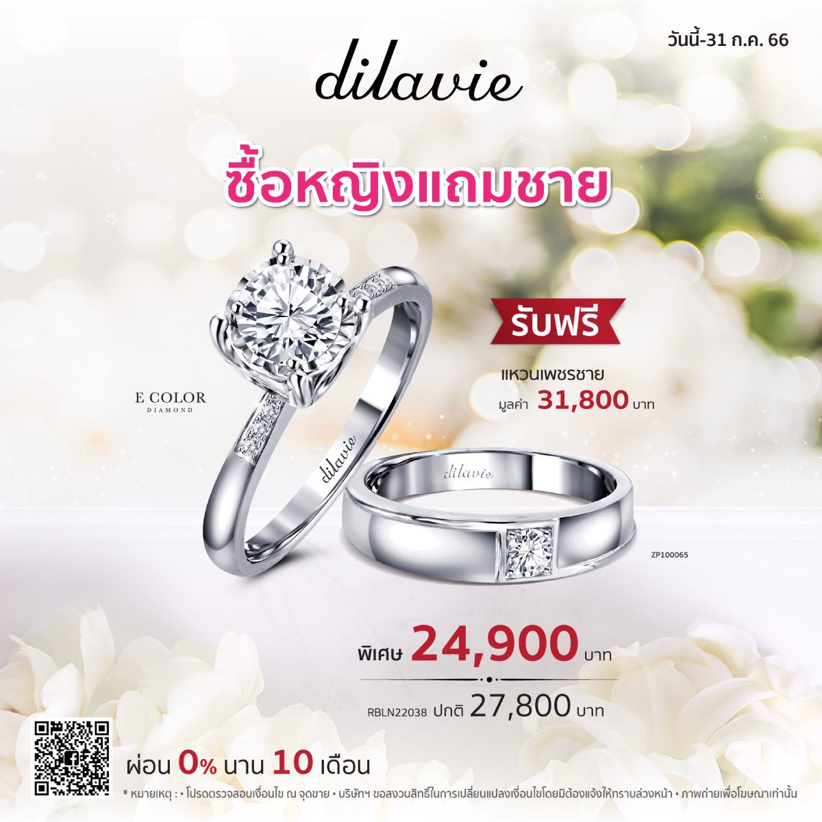ผ่อนสบายๆ 0% นาน 10 เดือน พร้อมรับเครดิตเงินคืนกับธนาคารที่ร่วมรายการ แล้วพบกันที่ร้านเพชร dilavie