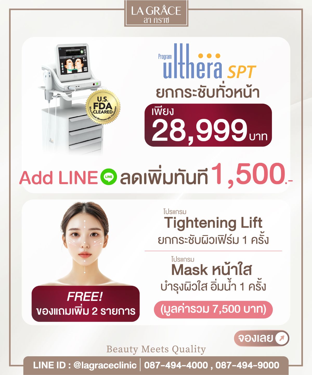 สนใจจองโปรแกรม Ulthera Add LINE ตอนนี้เลย