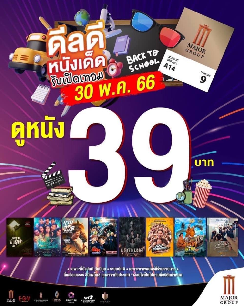 ดูหนัง 39 บาท เฉพาะวันที่ 30 พ.ค. 66 วันเดียวเท่านั้น