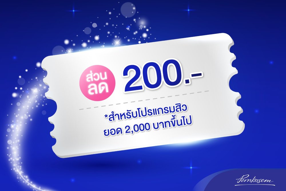 - ส่วนลด 200 บาท สำหรับโปรแกรมสิวยอด 2,000 บาทขึ้นไป