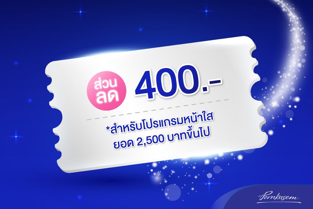 - ส่วนลด 400 บาท สำหรับโปรแกรมหน้าใสยอด 2,500 บาทขึ้นไป