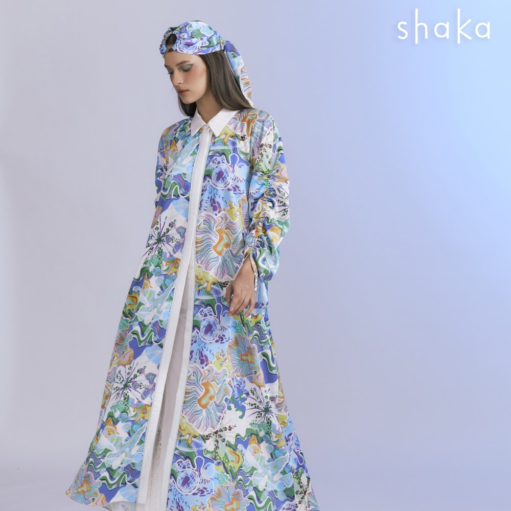 แบรนด์ “Shaka” ร่วมมือกันออกแบบลวดลายผ้าระหว่าง “Shaka” และ “Wishulada Panthanuvong” ศิลปินที่ใช้แนวคิดความยั่งยืนในการออกแบบ โดยได้แรงบันดาลใจจากการถ่ายทอดความงามของท้องทะเลอันสวยงาม ผสมผสานกับสภาพสิ่งแวดล้อมทางทะเลในปัจจุบัน ครีเอทเป็นเสื้อผ้าลวดลายต่างๆ เพื่อต้องการสะท้อนให้เห็นทั้งความงามและปัญหามลพิษที่เกิดขึ้นกับท้องทะเล โดยเลือกใช้วัสดุในการผลิตเสื้อผ้าที่ช่วยแก้ไขปัญหาสิ่งแวดล้อมได้อย่างยั่งยืน เช่น ผ้าที่ผลิตมาจากการรีไซเคิลขวดพลาสติก หรือ ผ้าจากกระบวนการนำเส้นใยสกัดจากเกล็ดปลานวลจันทร์ (Filagen) ให้สาว ๆ ได้เลือกสวมใส่ และมีส่วนร่วมในการอนุรักษ์สิ่งแวดล้อมด้วย
