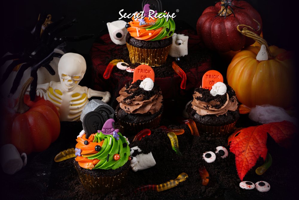 This is Halloween Scream Collection Secret Recipe ขนกองทัพคัพเค้กสุดคิวท์ สุดกรี๊ด มาให้เลือกฟินกันมากถึง 6 แบบ