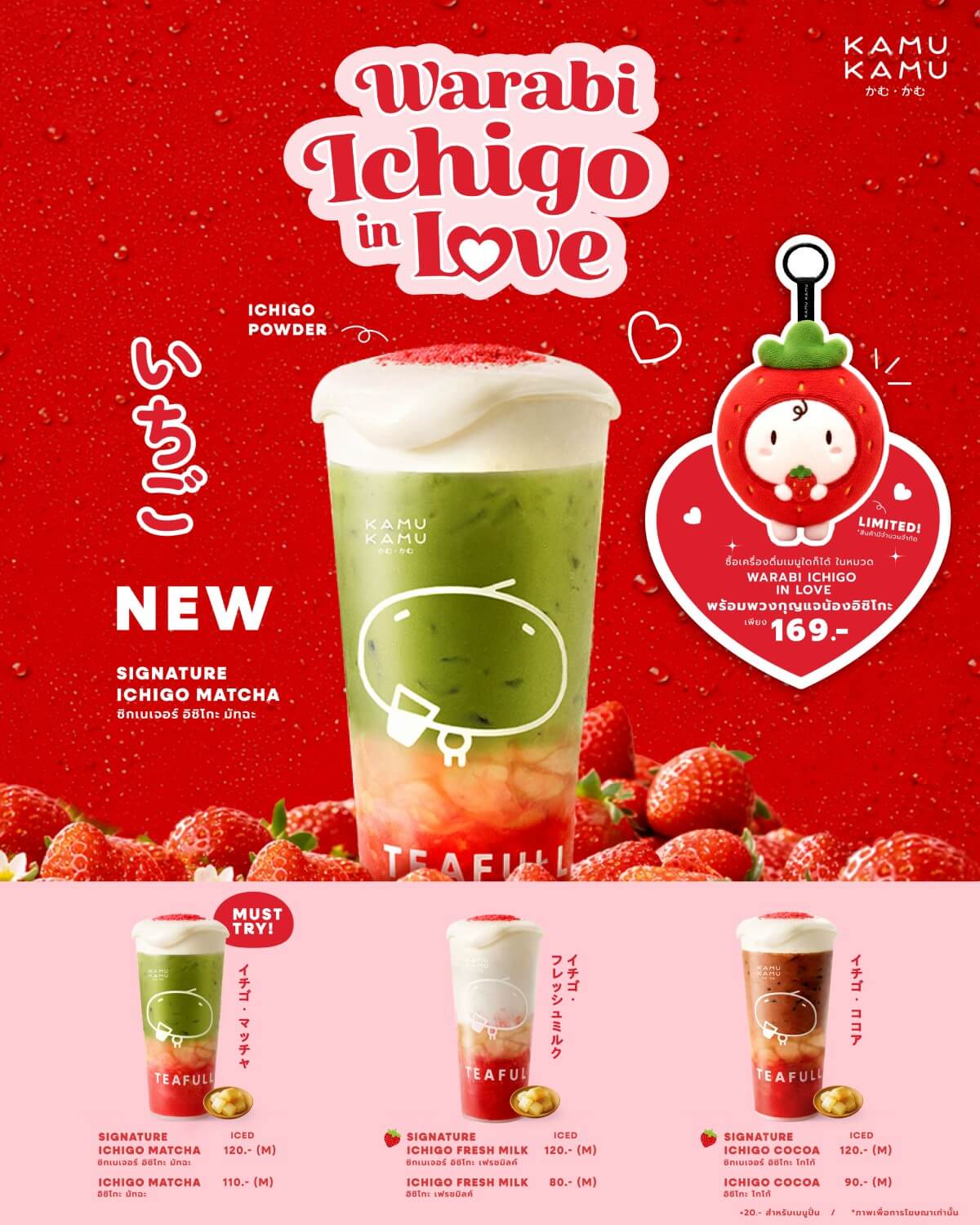 ซื้อเครื่องดื่มเมนูใดก็ได้ ในหมวด Warabi Ichigo in Love พร้อมพวงกุญแจน้องอิชิโกะ เพียง 169.-